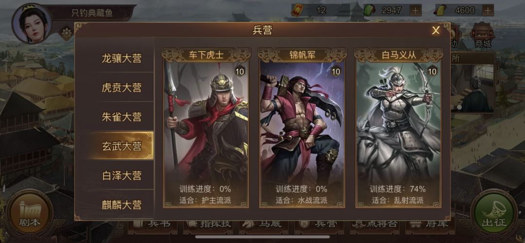 这3个不怎么吃装备和技能,马云禄给个连攻,护佑,摧锋。在虎卫光环下几乎0损伤。麴义,孙尚香给个援射,神臂就很给力了,战马给个驰射就行了。