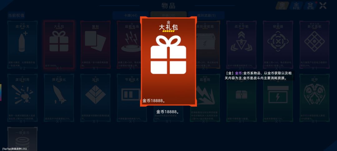 第五波的神器选择中,建议拿大礼包。配合开局携带的规则【金融毒药】(金币获取翻倍),大礼包提供的18888金币可扩至近4万,资源科技、商人刷新时间、商店刷新次数、战术卡伤害均可直接点满,大幅加快发育速度。