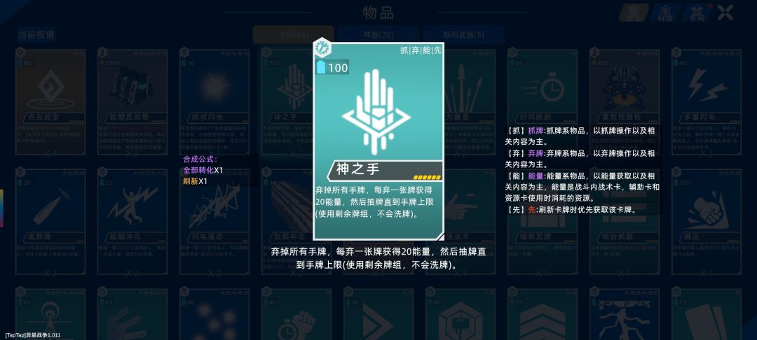 科技点亮顺序建议:掉落1-5,手牌上限1-5,电力1,能量供应冷却1-3,能量上限1-10。