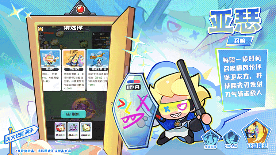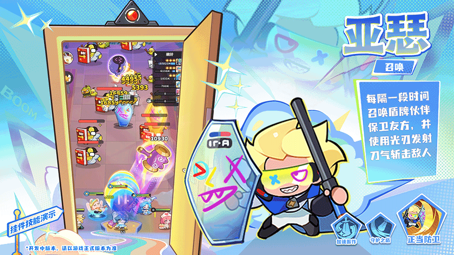 理论上只要一直有盾牌,可以避免队友受到伤害,所以如果在战局拾取挂件“喵喵之泪”(能量水滴),亚瑟将进化为真正的 “骑士王完全体”,一次性召唤两面盾牌!