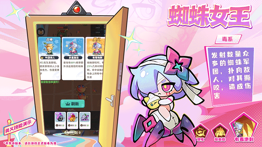 作为毒系梦灵,蜘蛛女王的战场是一场视觉盛宴:她挥手之间,成群的机械蜘蛛狂涌而出,扑向敌人,撕咬、挂毒、叠伤害。更致命的是,蜘蛛撕咬时,还有概率释放地刺,命中会触发怪物身上所有中毒的伤害——啪! 满屏绿光炸开,怪物血条直接蒸发。