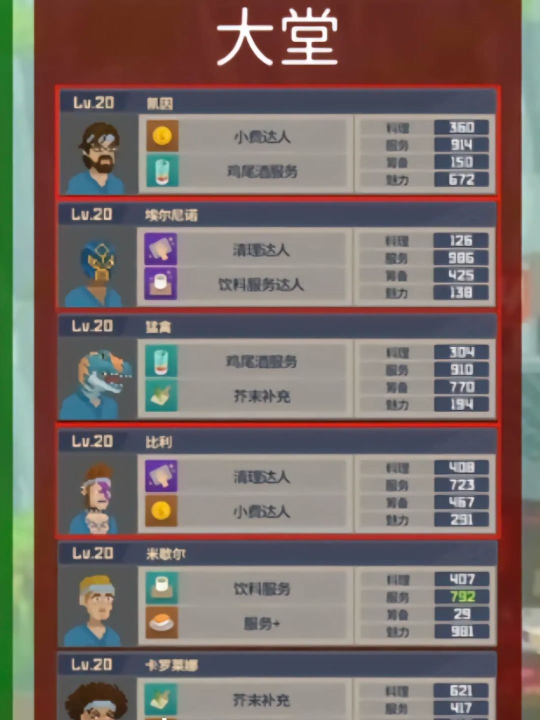 寿司店员工搭配和升级后的技能!