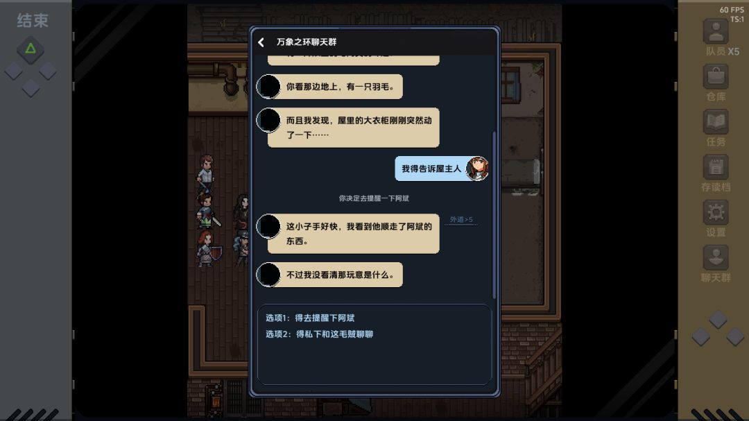 简单来说,永劫者之间可通过类似《无限恐怖》中詹岚“精神力链接”的方式,进行脑内沟通,呈现形式类似聊天群。不同能力、不同背景的队友,在遇到各类事件时,会提出不同的议题与建议,最终由队长也就是玩家来做决策。