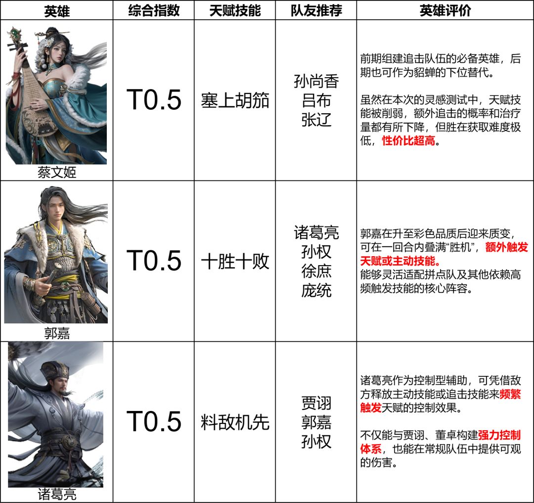 《三国:天下归心》灵感测试辅助英雄排行榜