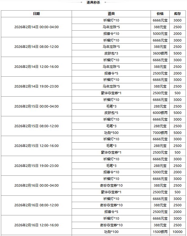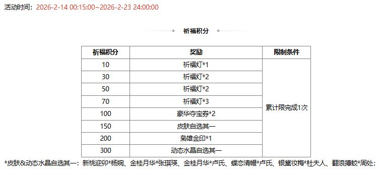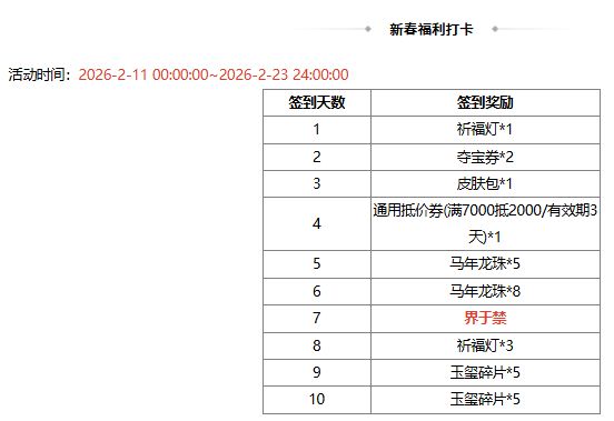 活动时间:2026-2-14 00:15:00~2026-2-23 24:00:00
