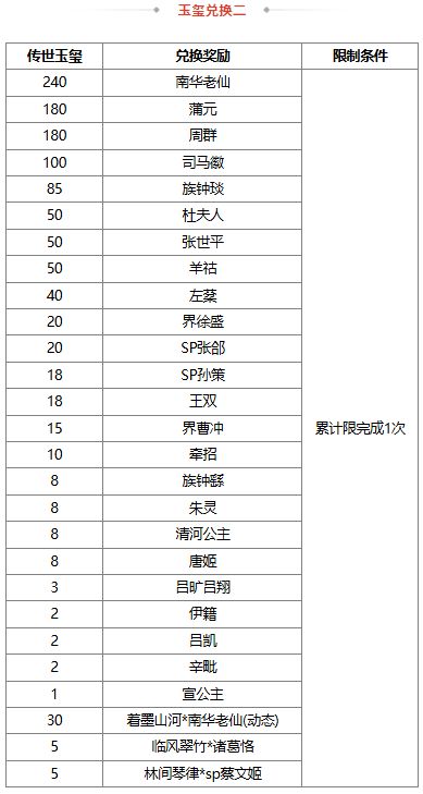 2、若兑换奖励是在此次活动前已拥有的永久武将、皮肤、三国秀,则无法重复兑换 ;