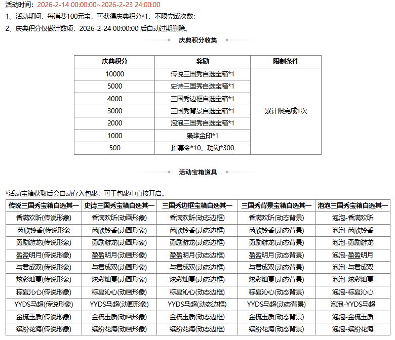活动时间:2026-2-14 00:00:00~2026-2-23 24:00:00