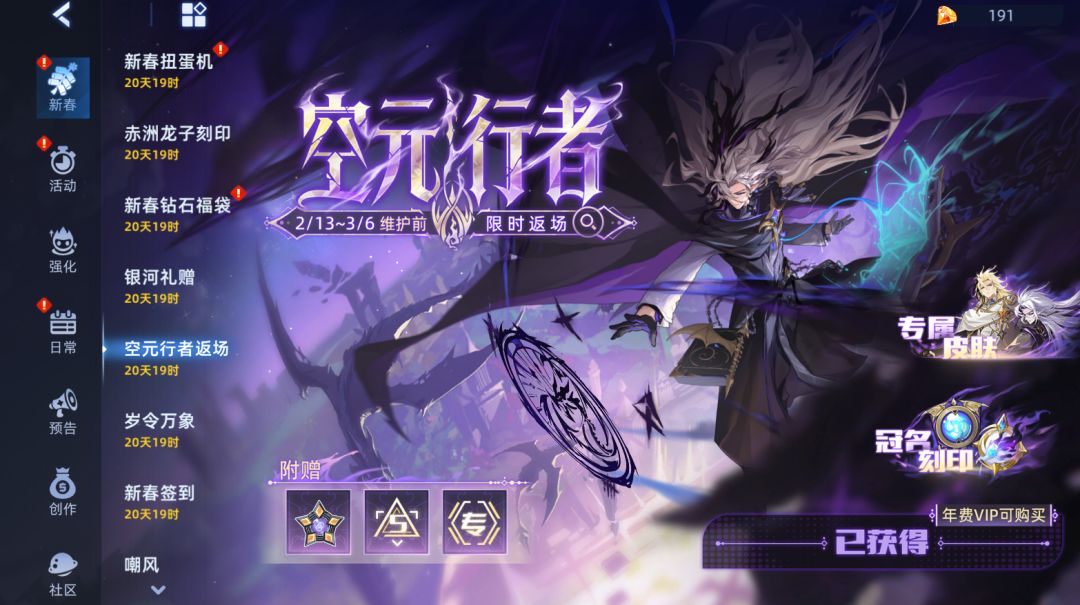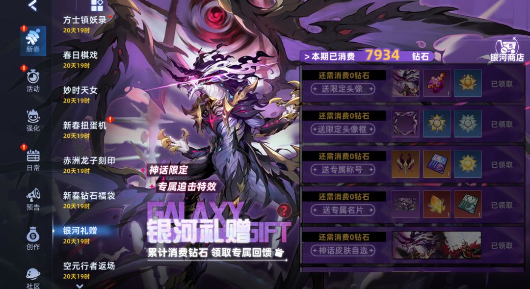 银河礼赠活动开启,空元行者神话皮肤来袭!