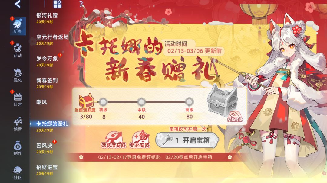 完成每日任务升级宝箱,圣心女皇·卡托娜新春皮肤免费领取!