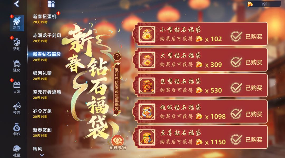新春钻石福袋回归!购买福袋即可获得更多钻石!