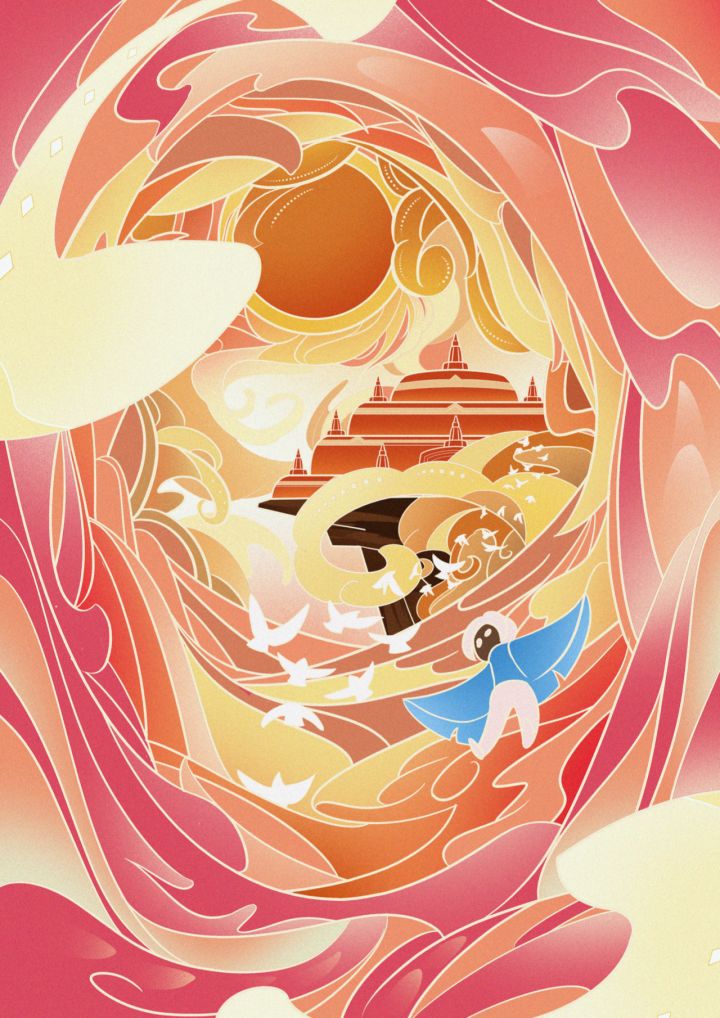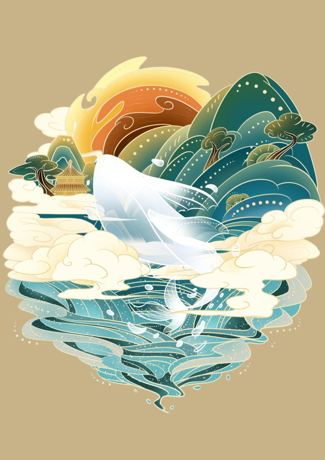 白鸟引吭高鸣,流云载我前行