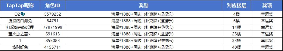 ①获奖名单将在活动时间结束后5工作日内在本帖内公示,冒险者记得查看并按提示登记获奖信息哦;