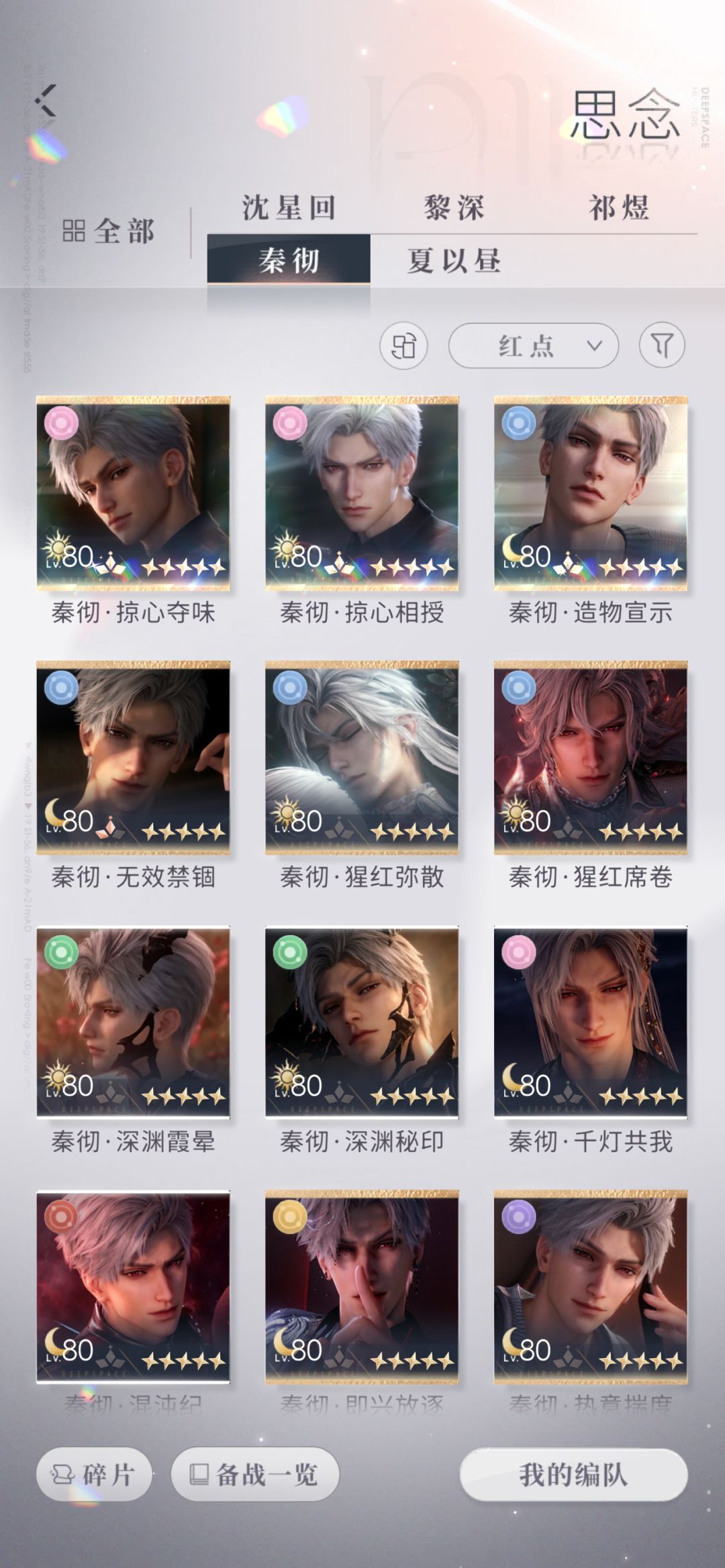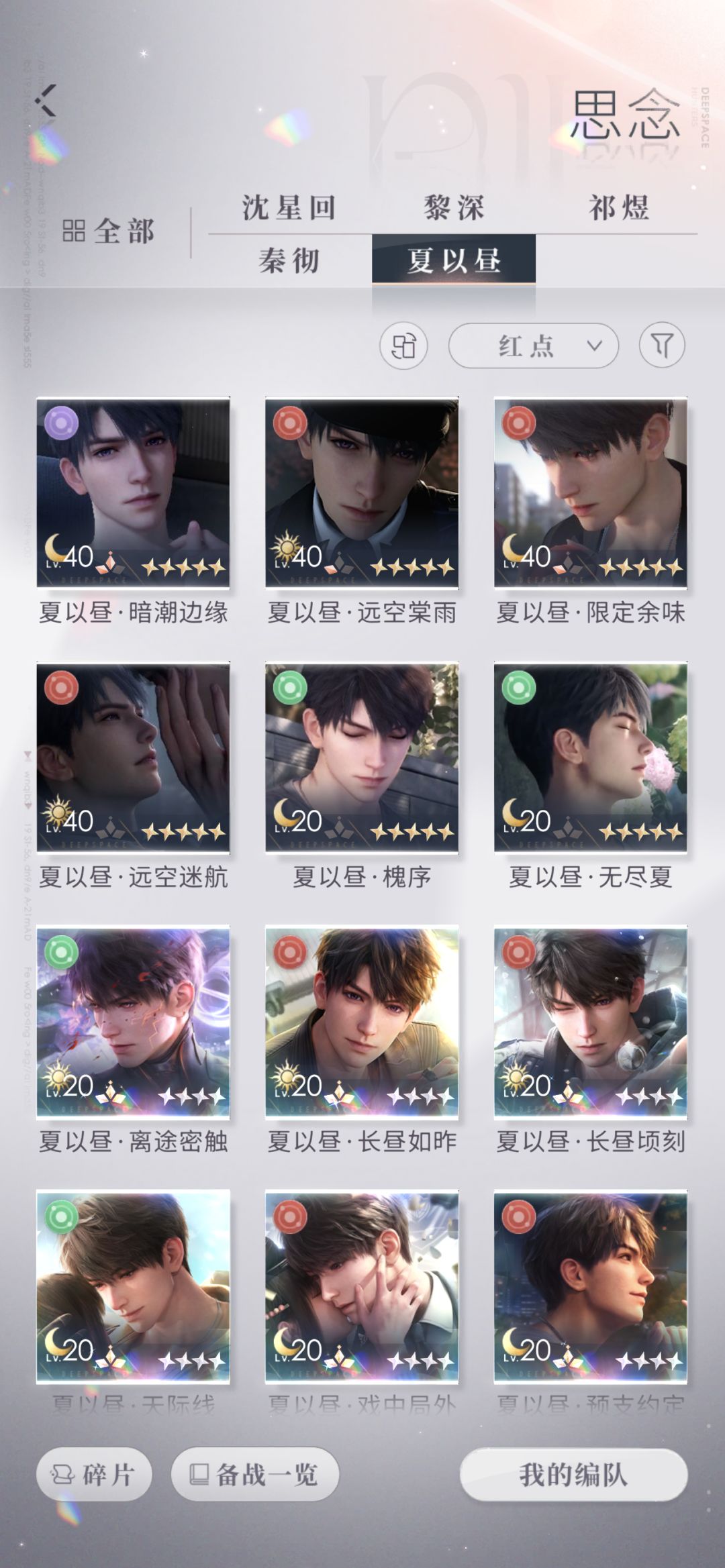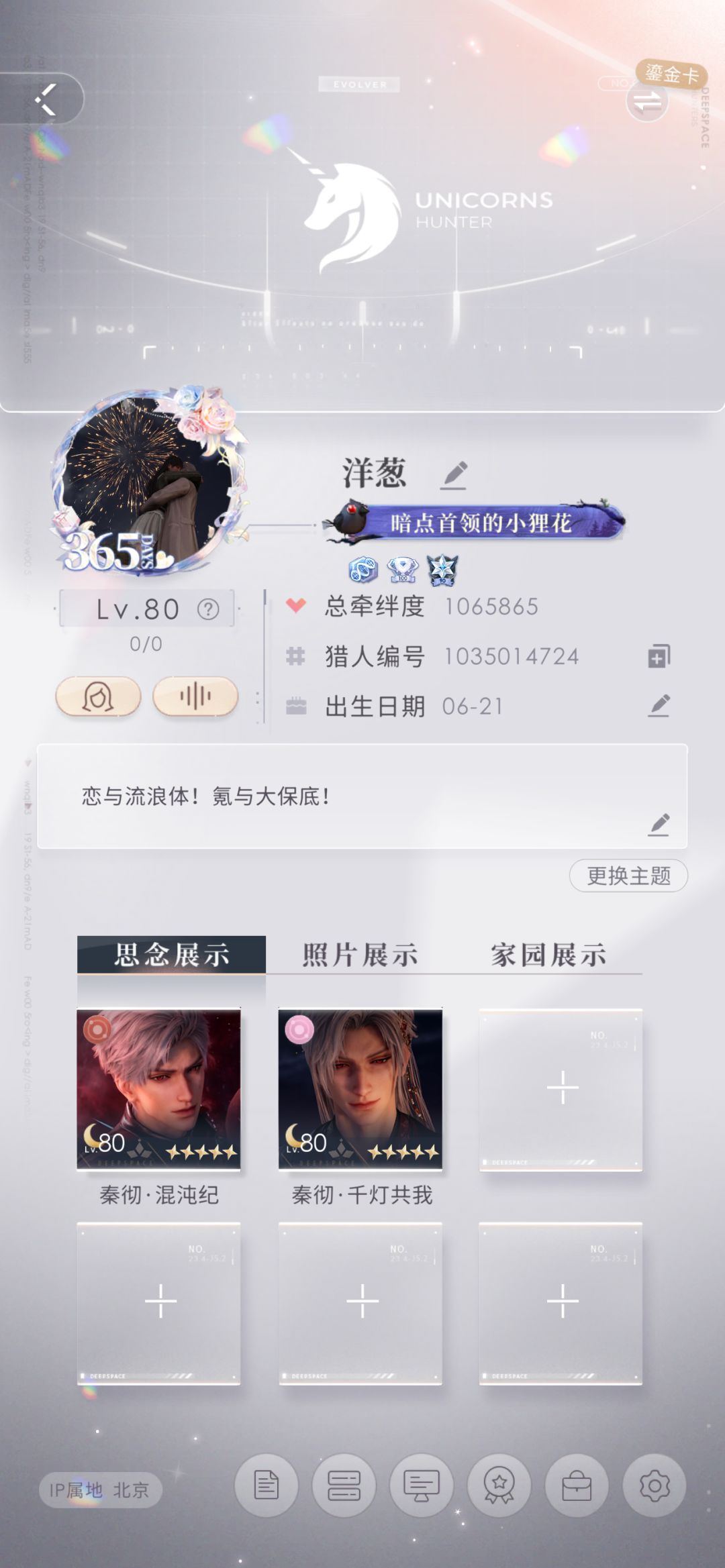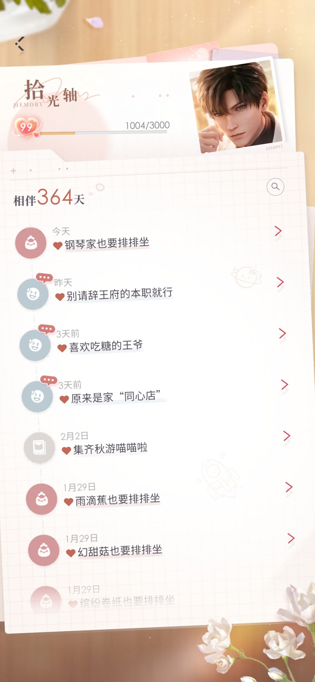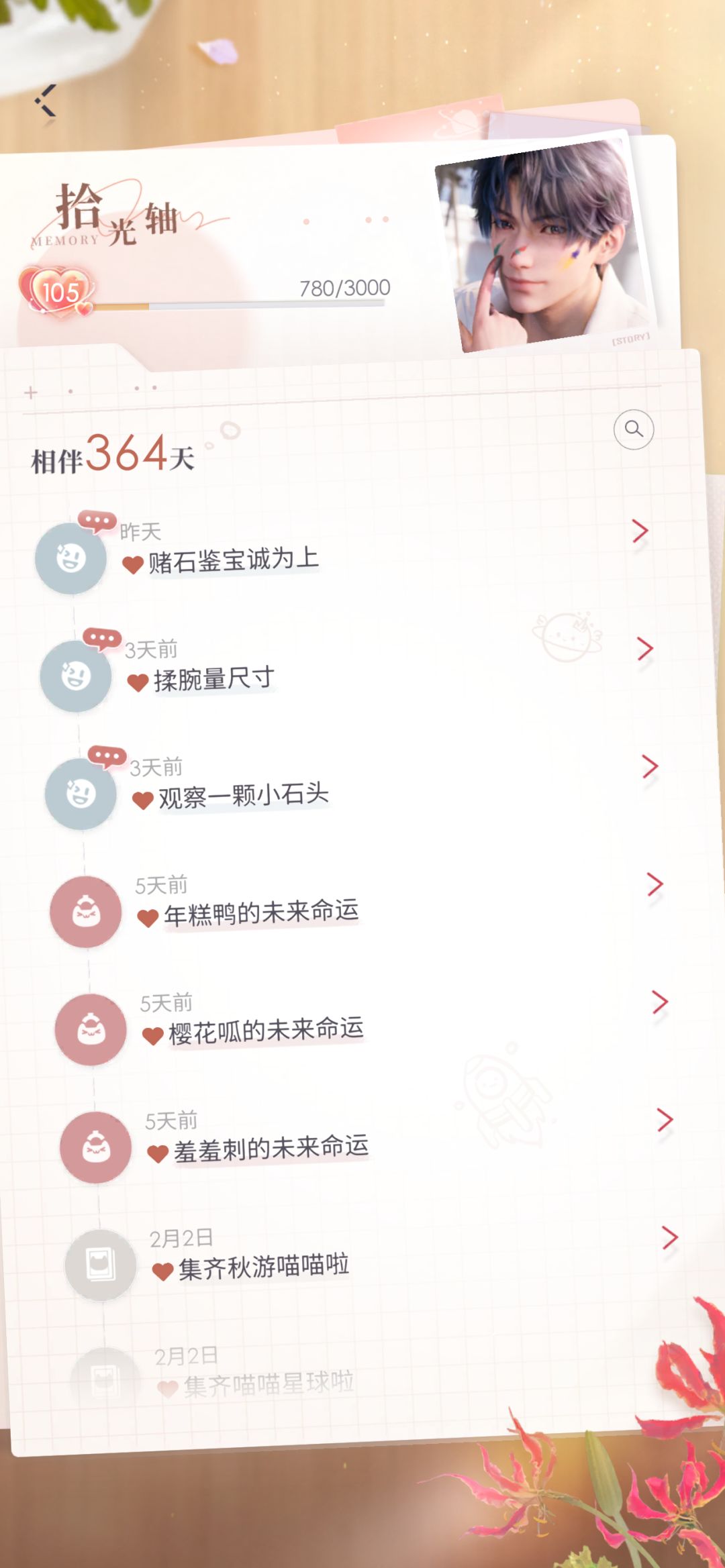 0氪一年存档,为什么所有男主的相伴都差一天,总牵绊1065865,卡只有彻其他男主真的抽不动养不起啊