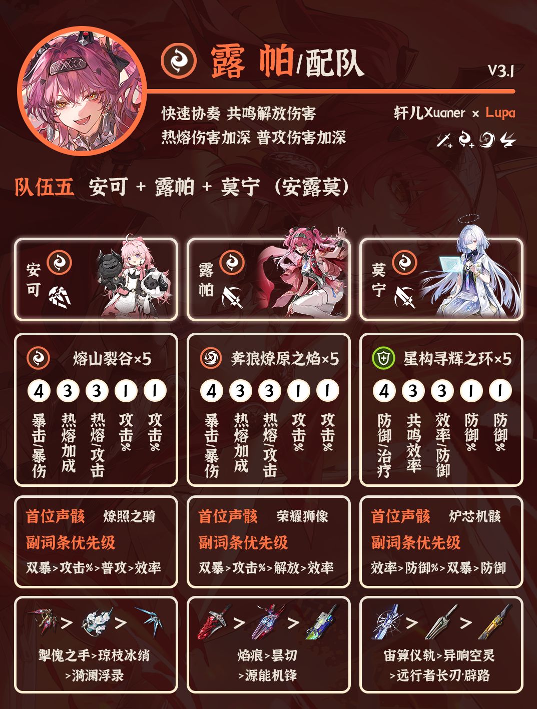 露帕,热熔核心副C。配队主要考虑以下几点: