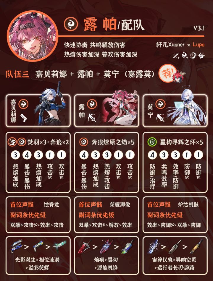 露帕配队来啦~轩儿Xuaner给各位整理了鸣潮V3.1露帕最新的配队推荐~