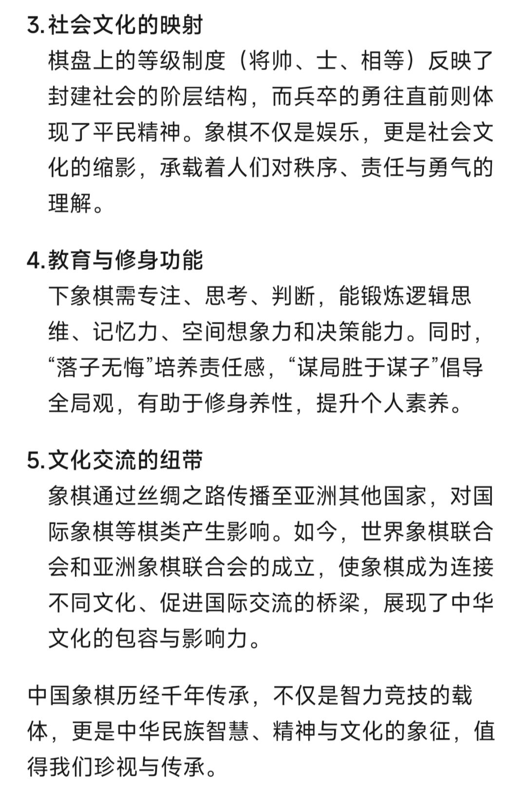象棋是中华民族智慧、精神与文化的象征,值得我们珍视与传承。