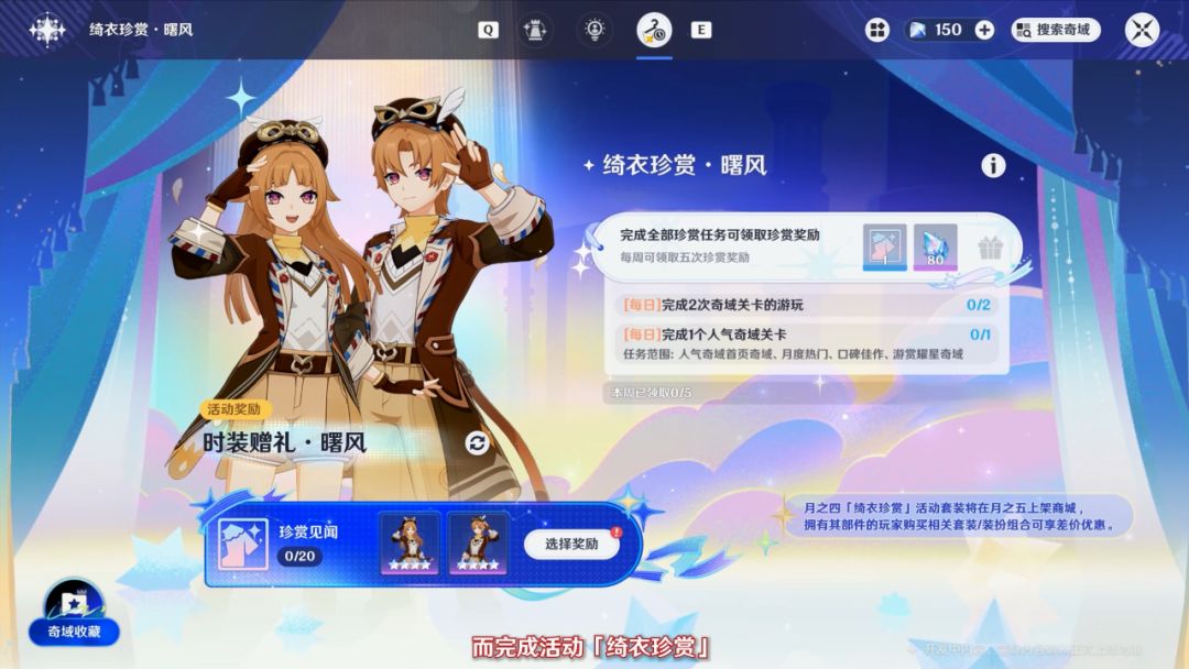 完成活动可以免费获取一套千星奇域的装扮以及150奇丽凝晶。