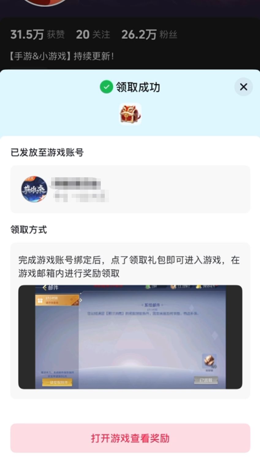 手机APP打开抖音英雄杀主页-专区-福利礼包,点击领取。若未进行游戏账号绑定,则会自动拉起微信/QQ小程序-来联进行游戏账号与抖音账号的绑定。绑定完成后就会回到抖音获得礼包(注:需要关注英雄杀抖音官号),礼包会自己发到游戏邮箱内。