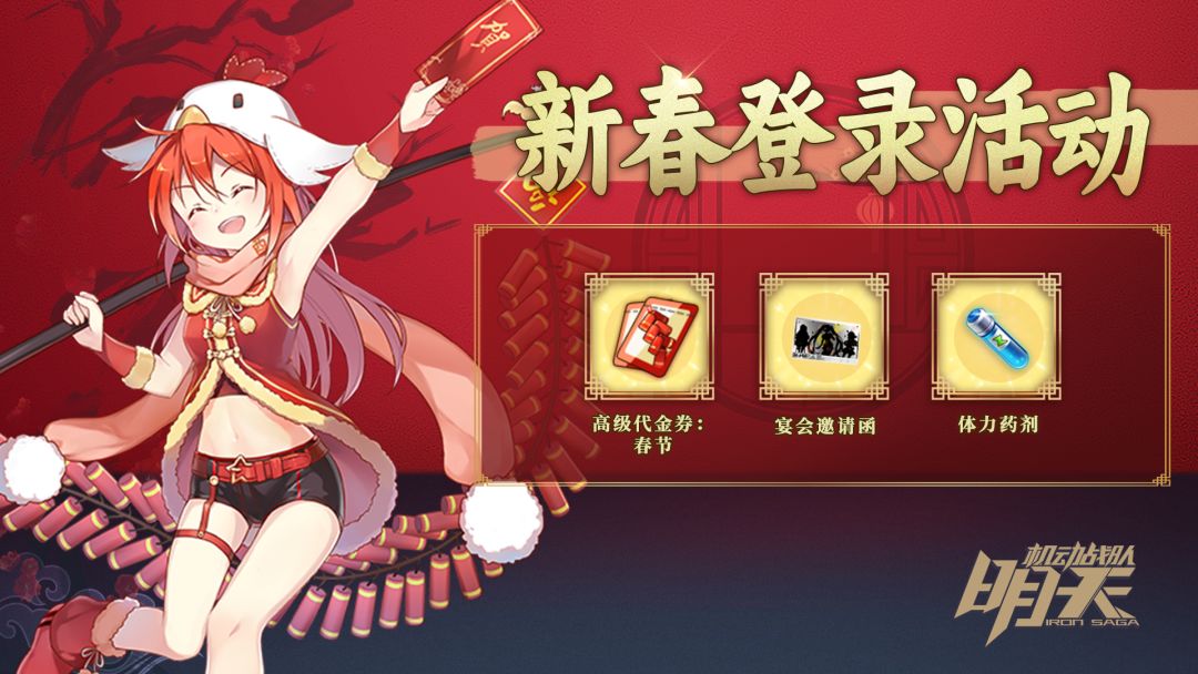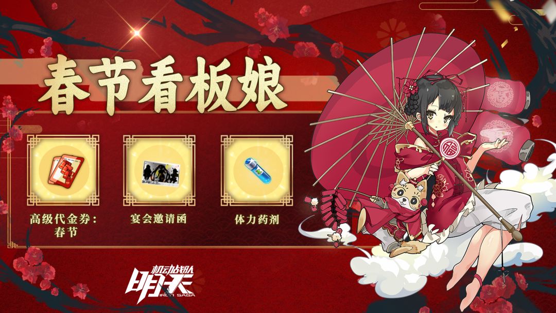 活动期间,指挥官可登录游戏领取假日看板娘福利。奖励内容:【高级代金券:春节】*5、宴会邀请函*5、体力药剂*10。
