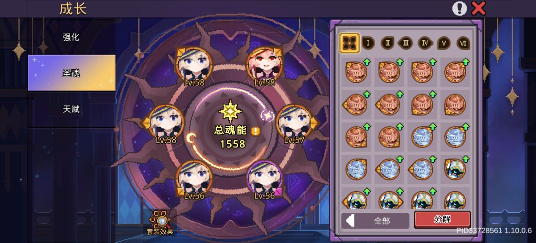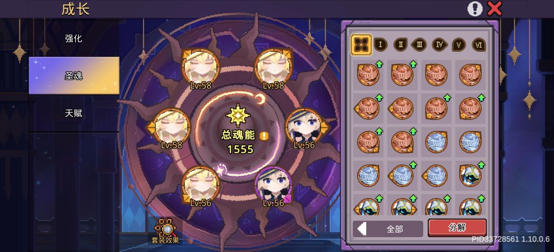 4,圣魂很重要,可以打勇者试炼拿到几个高级圣魂宝箱,选一套对应流派的金色圣魂,注意不要拿错或者拿重!天赋属性加点顺序最好为无视防御,命中率,暴击率,暴击伤害,精英伤害,点满这些之后缺什么就看着点。