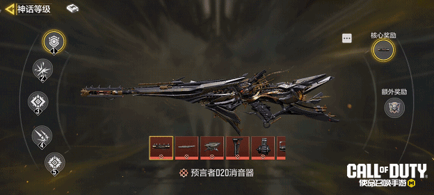 等级三解锁专属神话外形,武器核心处的金色能量转化为暗红色的脉络,在枪身流转;枪管微微震颤,缝隙间渗出红色光芒,仿佛某种沉睡的力量正在苏醒。