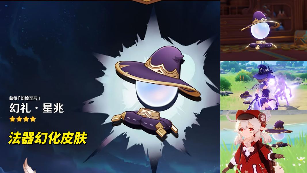 此外奖励也很不一样,不再是4星角色或武器,这次改为了武器外观。法师帽+占卜球的设计,「幻礼·星兆」可替换1位法器角色的武器外观。