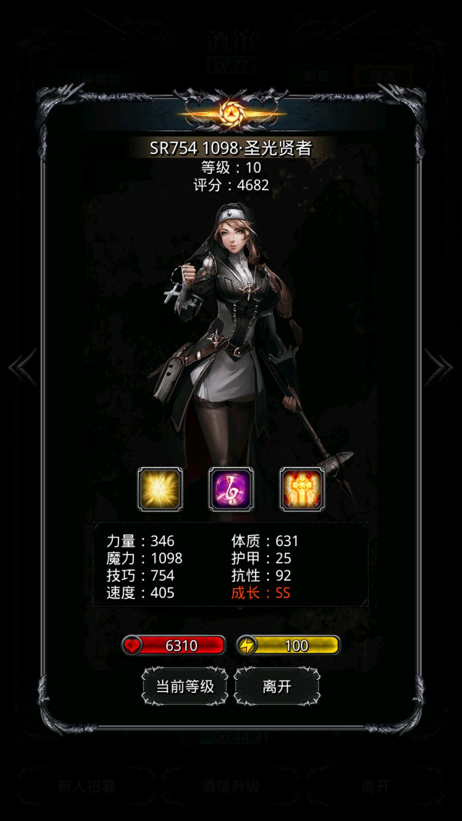 魔传渡劫失败半步极品(日10就+13),魂贤介于及格和极品之间(不搞了反正不是核心),技传踩线极品(日10小爆发+26),圣光魔技双极品(总算有个极品圣光了