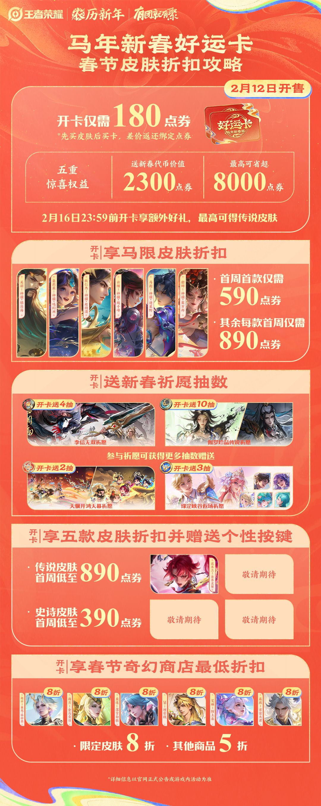 马年新春好运卡2月12日正式开售!开卡仅需180点券,享五重惊喜权益,最高可省超8000点券~