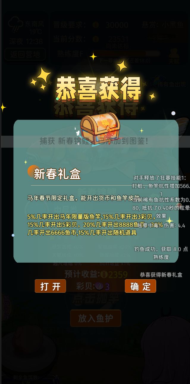 捕获新春锦鲤可百分百获得新春礼盒,几率获得马年限定鱼竿皮肤