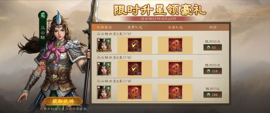 自从限定武将马云禄上线以来,热度始终居高不下,有兄弟们总是疑惑活动结束能否抽取12星马云禄?那么本期,舒风将为兄弟们详细解说600点将令获取攻略以及12星马云禄进阶攻略!