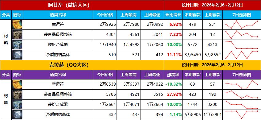 本统计价格意在探讨交流用,无其他任何商业目的,文中所述建议仅供参考,请结合实际情况自行判断,另市场变化较大,最终价格请以所在区服的实际价格为准。
