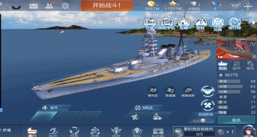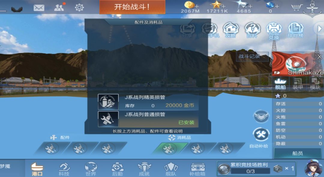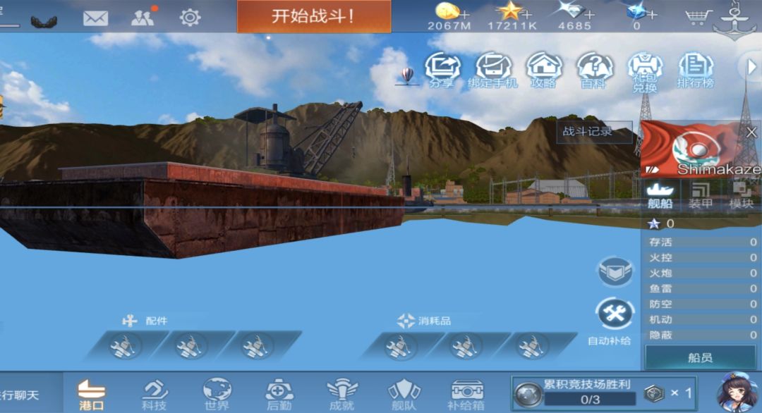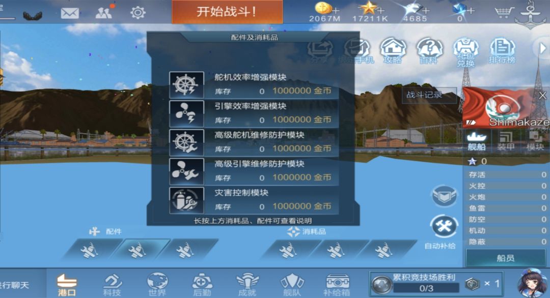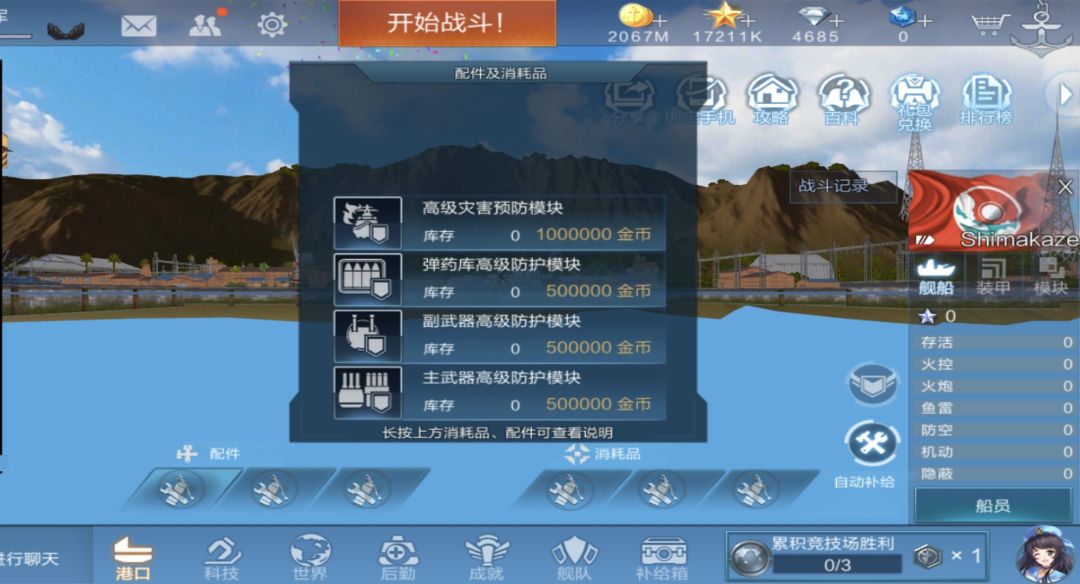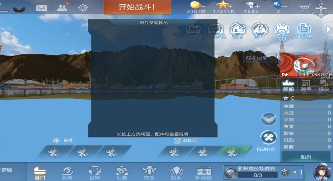 三号消耗品没有,是只有俩种消耗品的军舰。