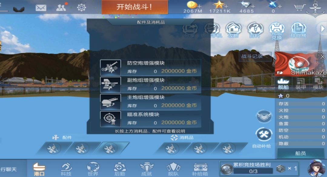 三号配件栏:好家伙,主炮、副炮、放空炮都有,火力挺猛啊!是个大家货,