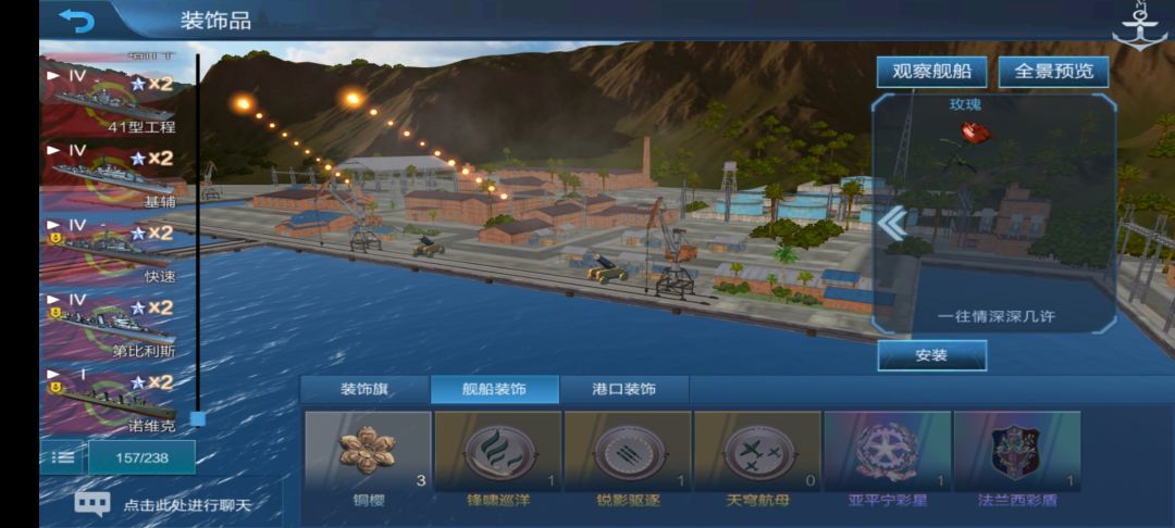 点开饰品栏,旗帜饰品可以加,可以挂军旗(没截图),船只饰品发现只能加装中立势力和日系,明白了,日本间谍船!