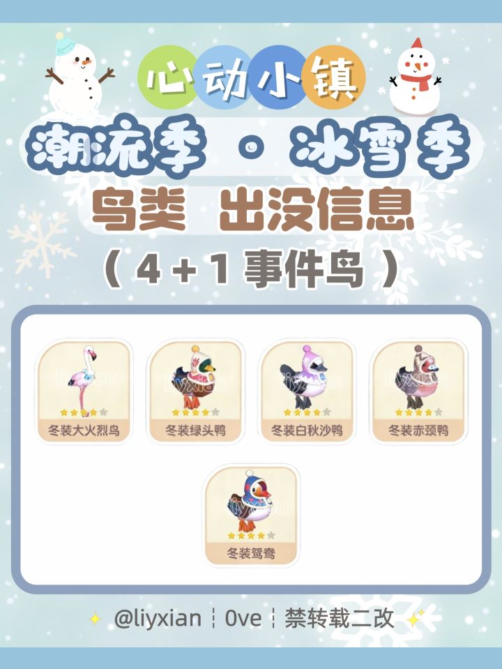在事件中,除了可以拍到之前解锁的4种限定鸟类:【冬装大火烈鸟】、【冬装绿头鸭】、【冬装白秋沙鸭】以及【冬装赤颈鸭】外,