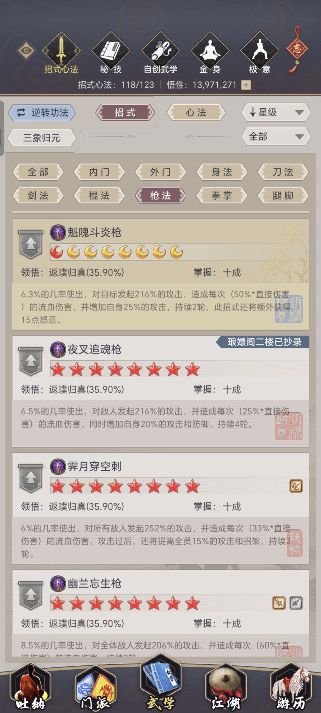 主动出招率114。想忘记一两个。不知道该忘记那个。当前卡图在青衣10。当前用的驾山崩。