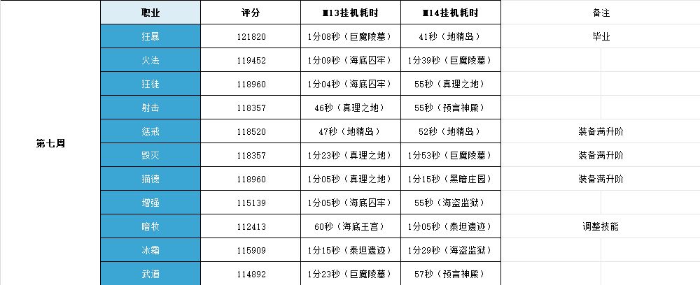 每周记录时间,为了挂机快一点点一直都在微调,到现在热情是真的一点点被磨没了