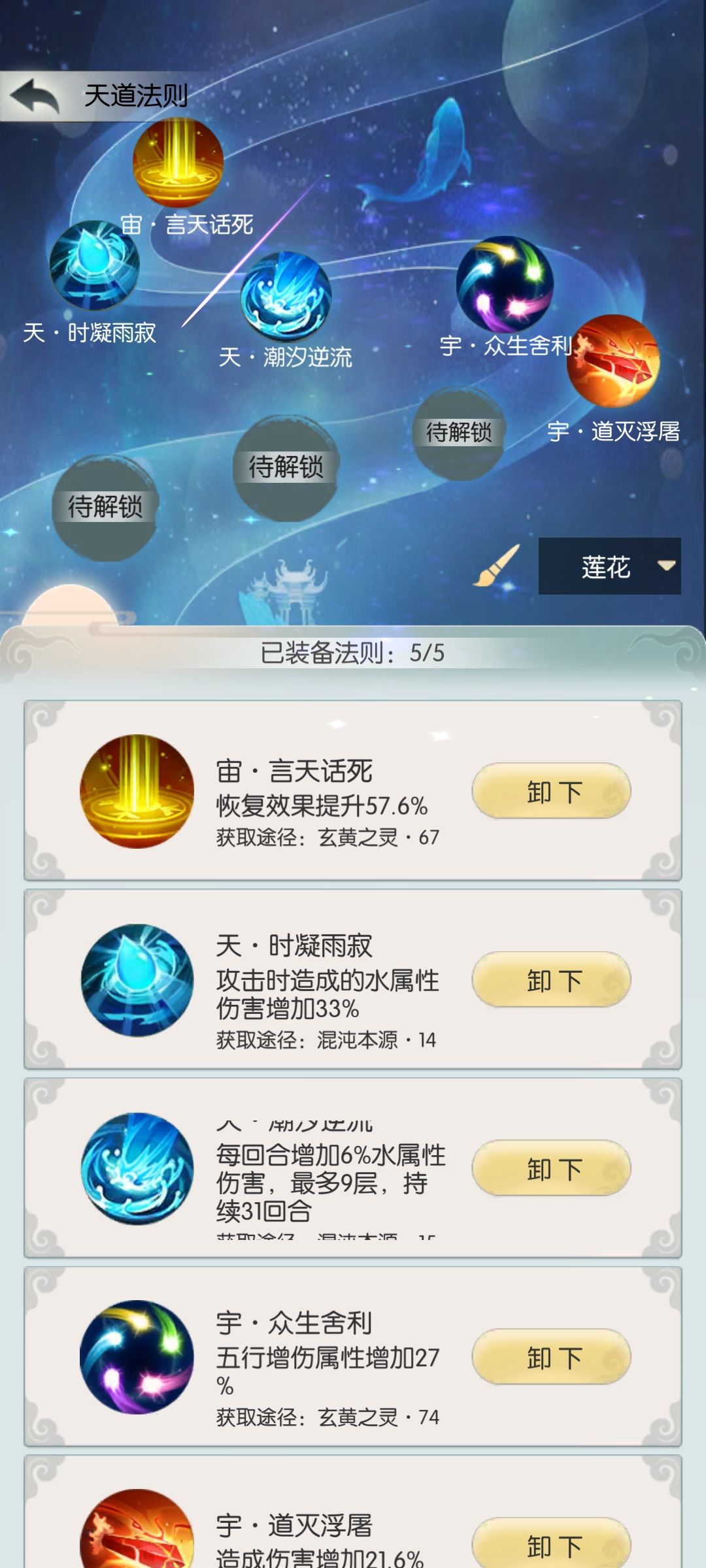 神通带睁目为日,如果伤害不够可以考虑带九阳五气,第二次木莲扣血触发土莲,用土莲保命抗住飞花落叶诀,触发无敌之资抗住木莲下一次普攻,还是挺看命中的,五鬼放在第四回合避开木莲的破心清增益,剩下的就交给命中率了