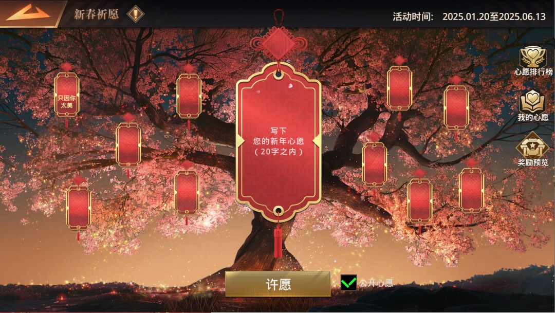 指挥官之间可互相查看彼此的新年愿望,并进行点赞互动。
