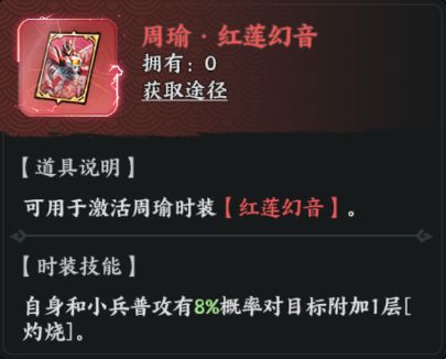选择时装可以进一步增强周瑜的强度,并且普攻有概率能够对敌人附加一层【灼烧】效果,为队伍和本身带来更多收益。