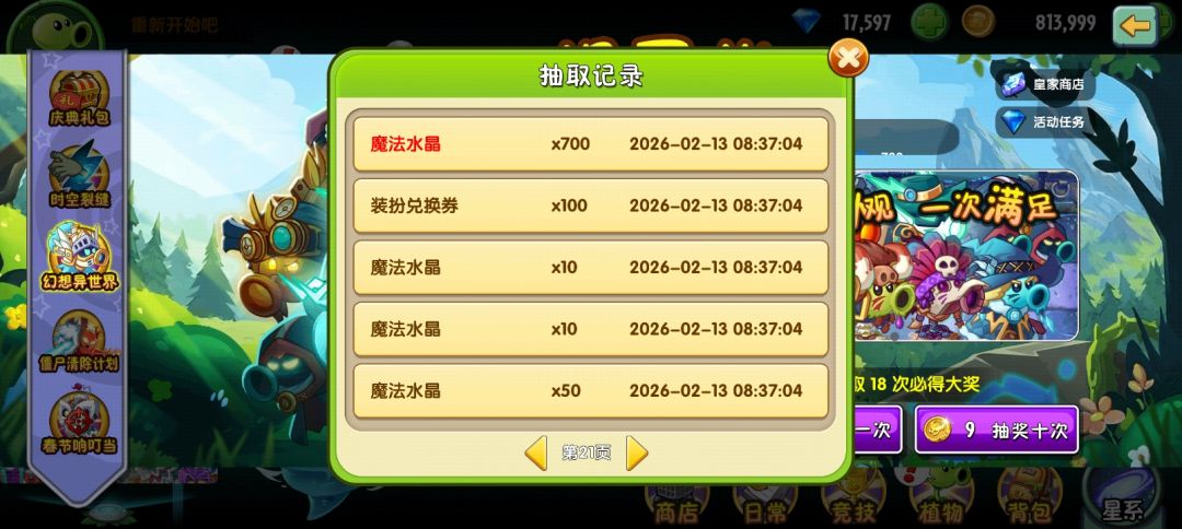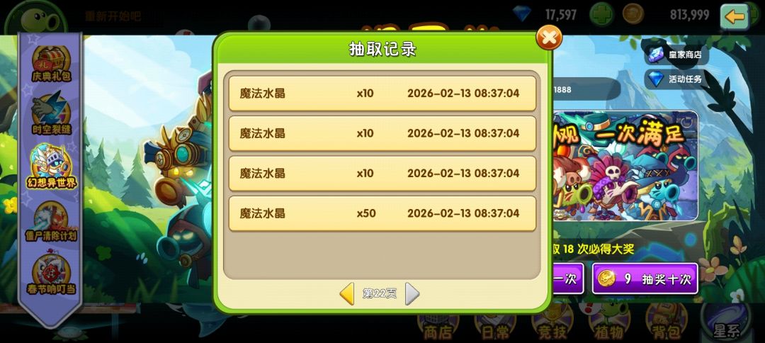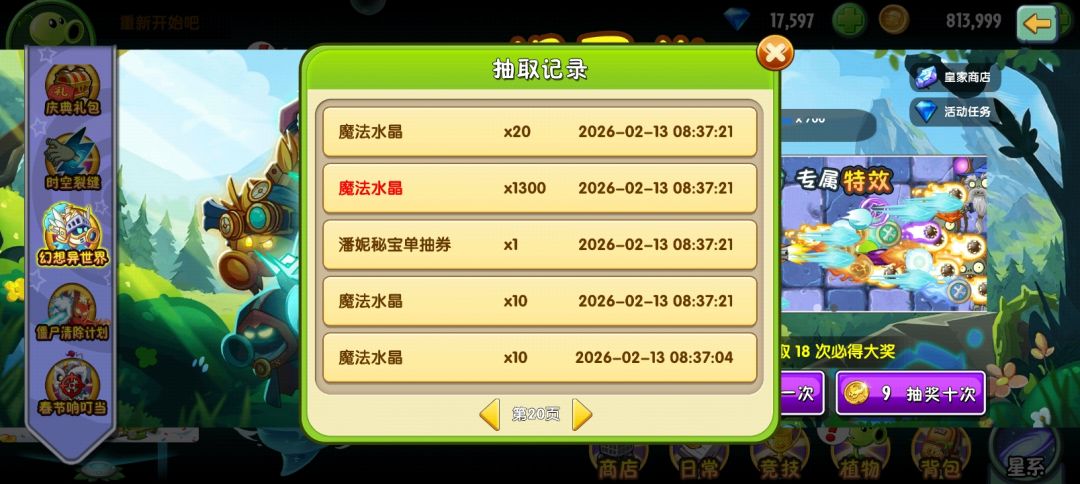 最后五千多水晶把第二排清空了,希望大家都有好运气!