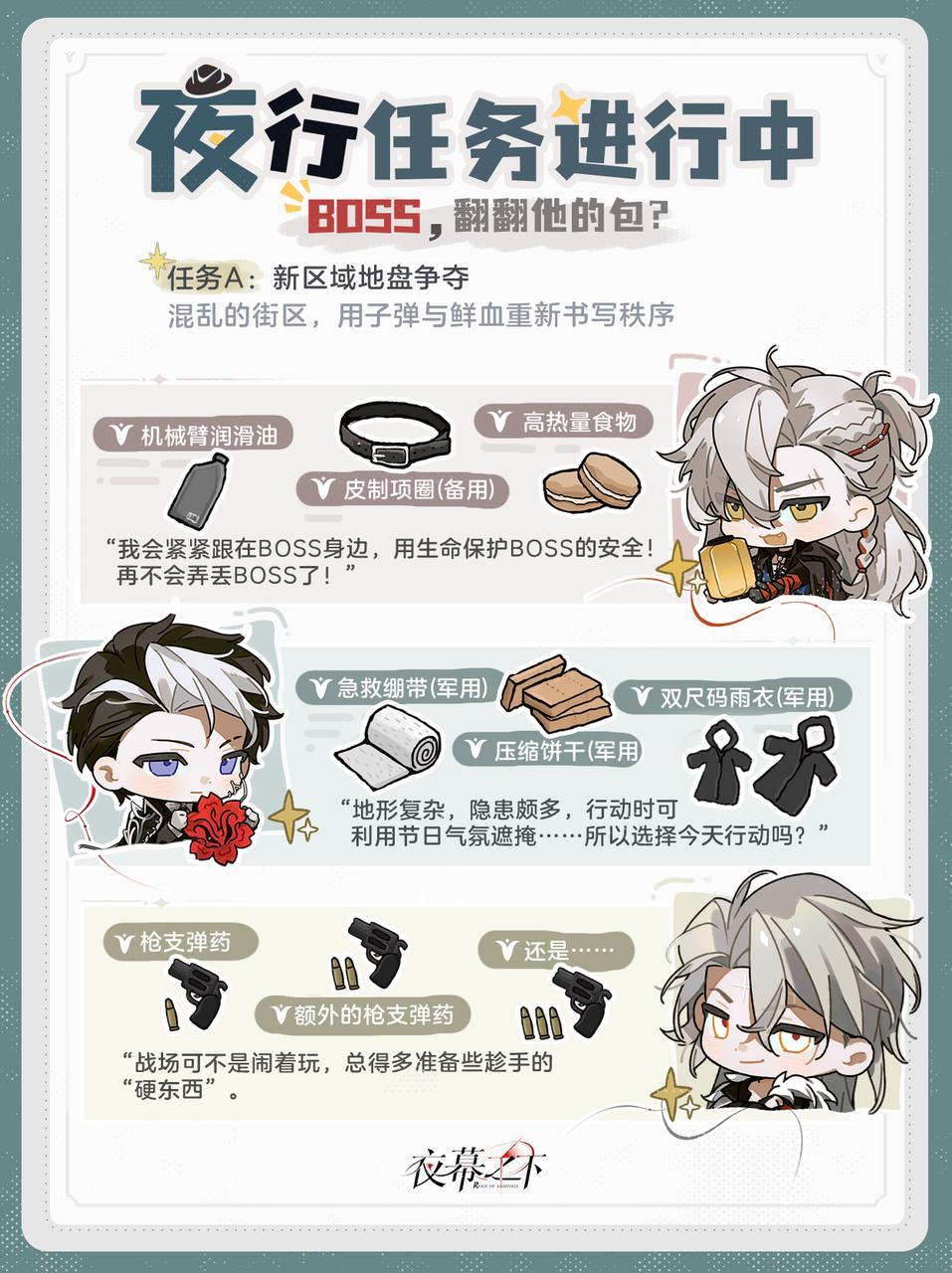 不过……在今天,BOSS会选择带上哪位夜行者一同出发?