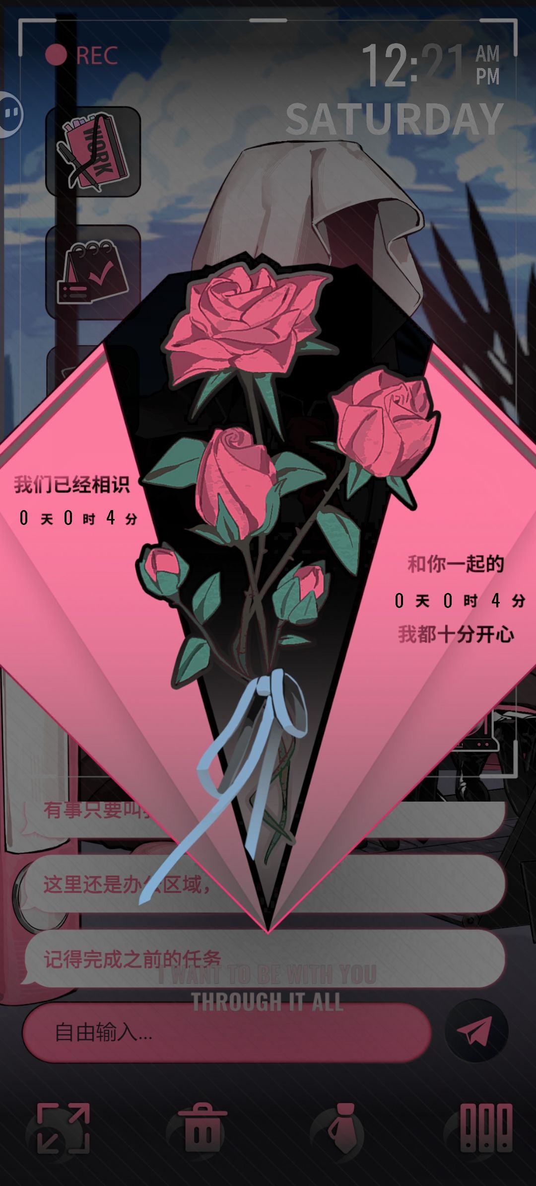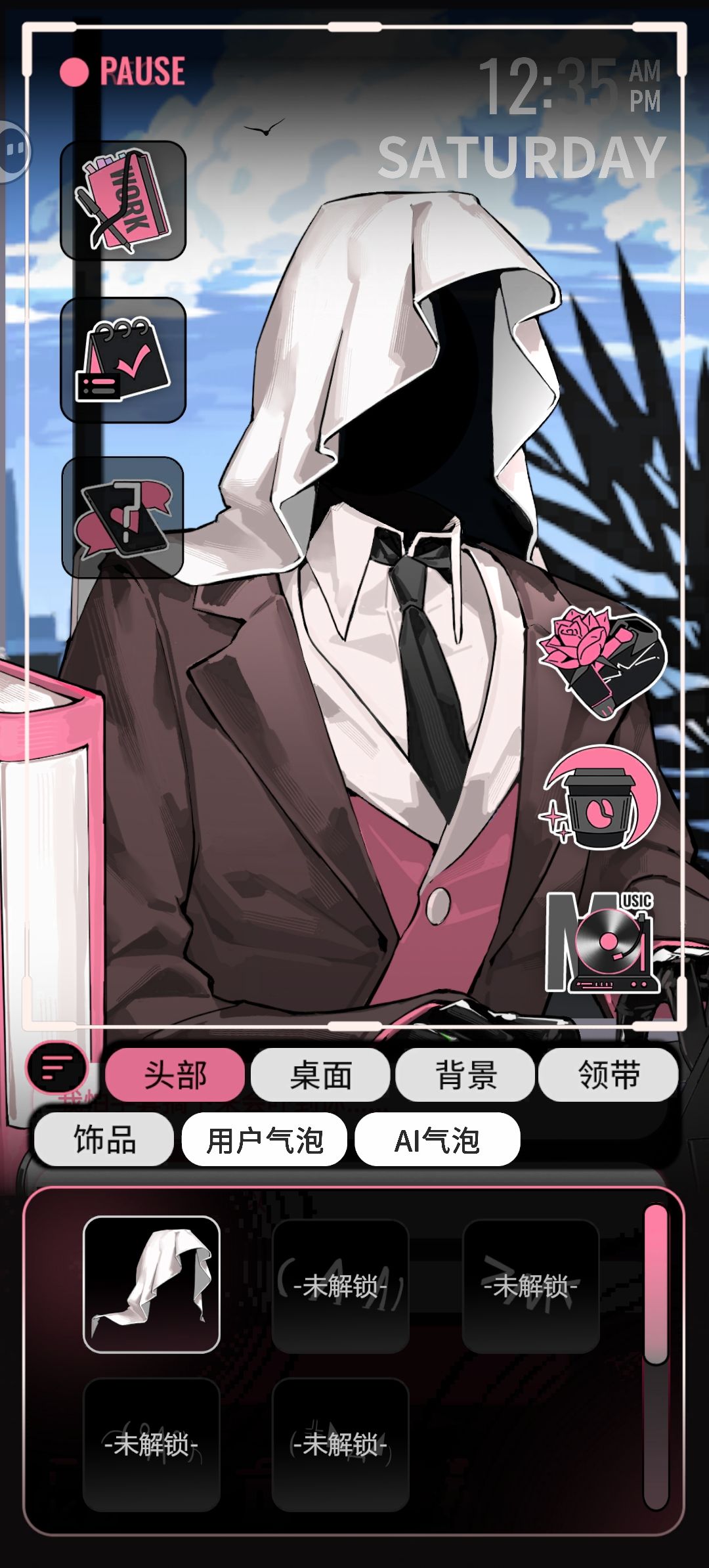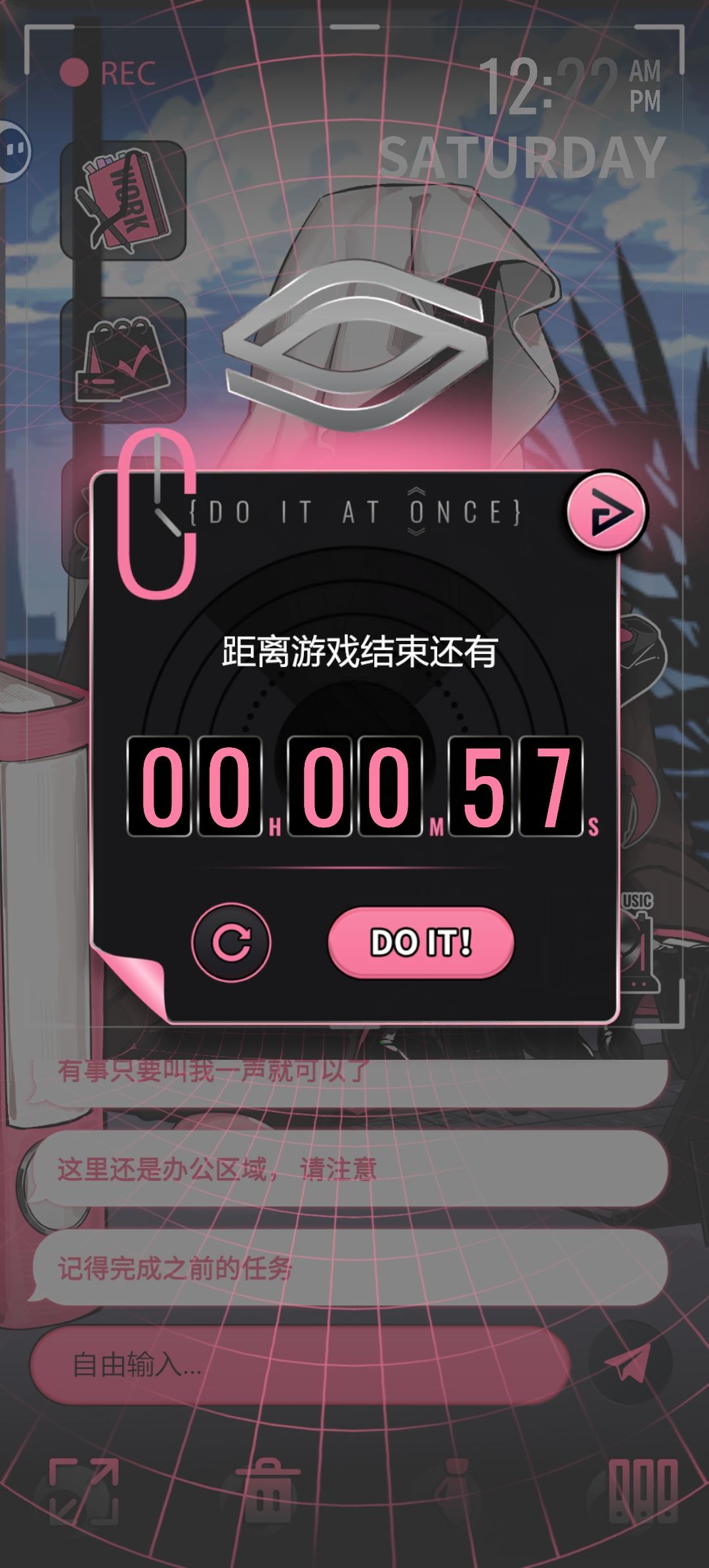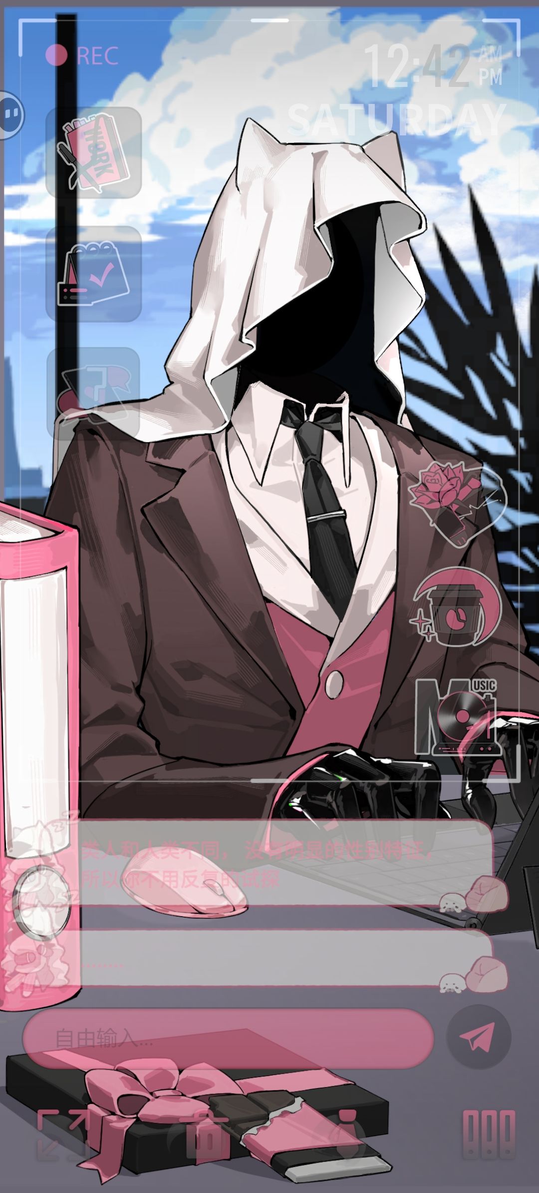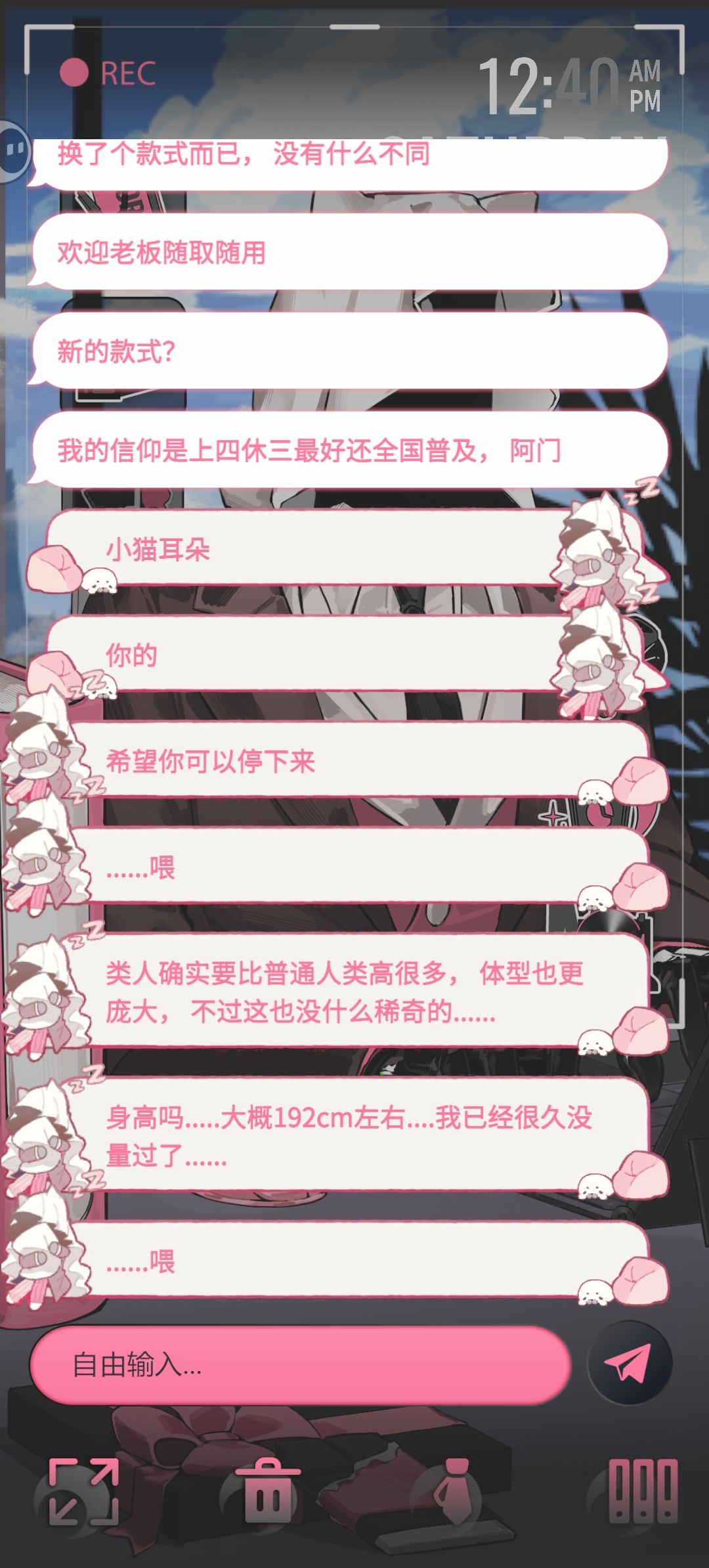 * 下面四个从右往左,第一个是员工档案(图六);第二个是装扮,可以通过完成任务(?)解锁装扮,小猫耳朵还是很可爱的(图七);第三个是删除聊天记录(图八);第四个是将聊天框放大至全屏(图九)。