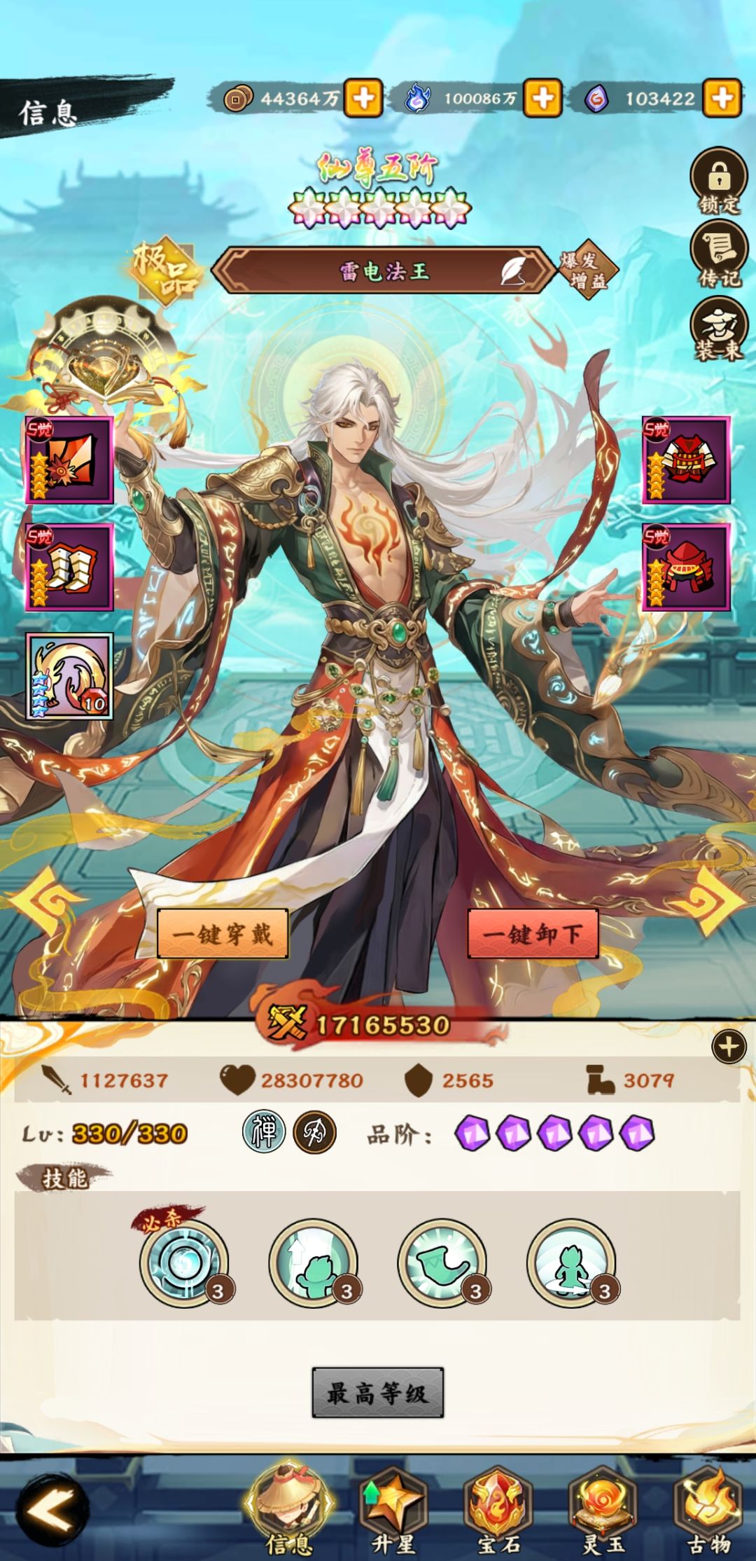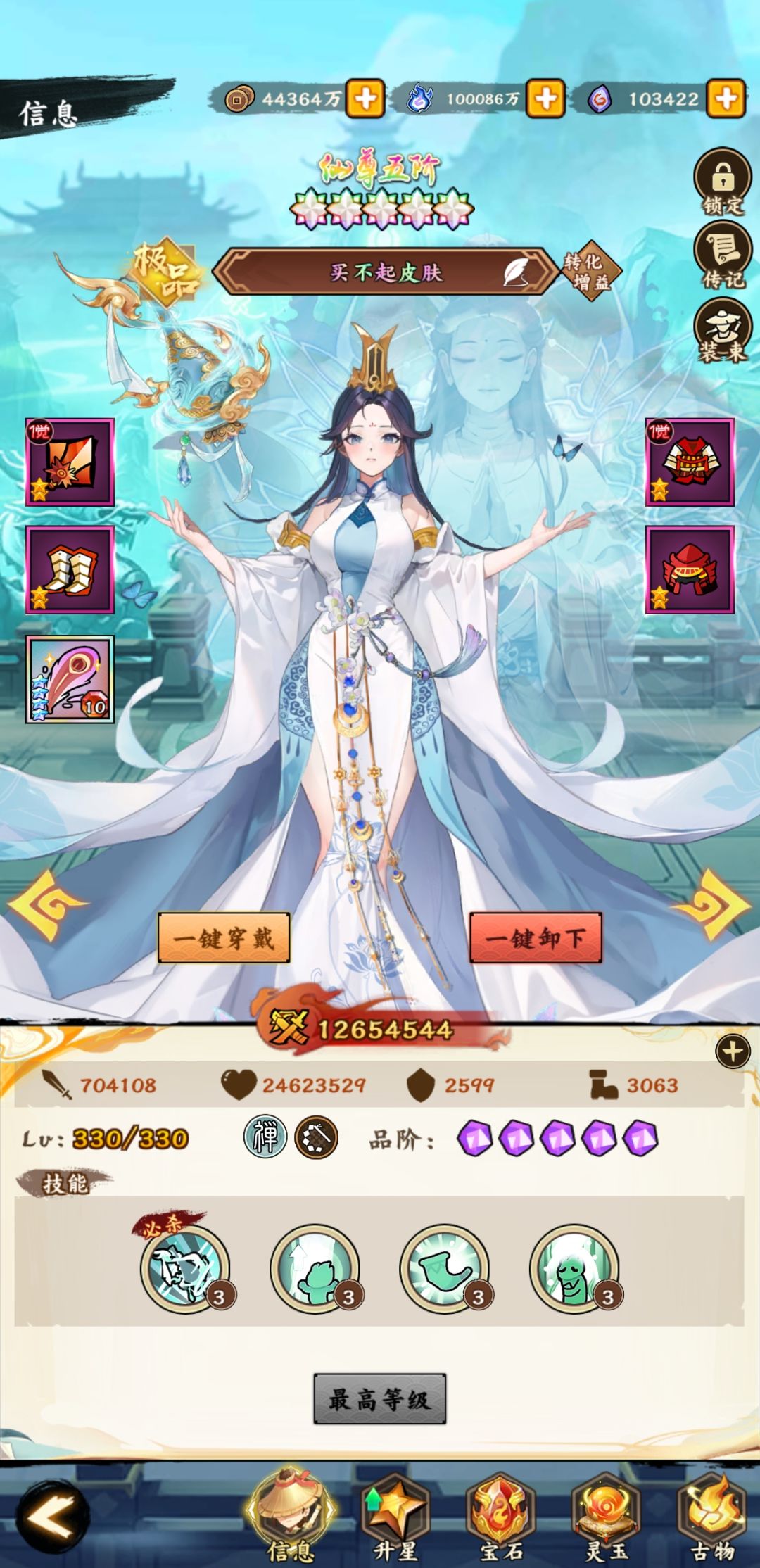 3、灵玉:固守、石化、不屈、驱散、护盾,中间灵玉用重岳。