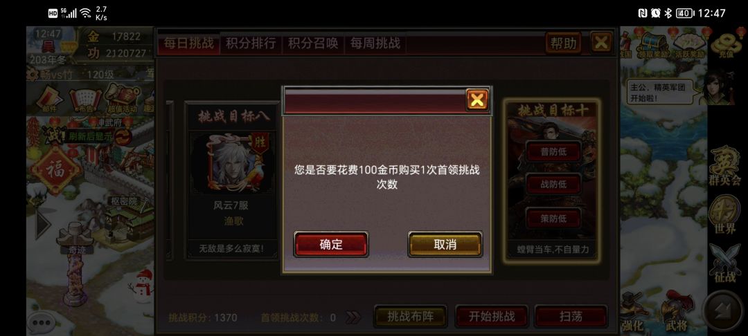 活动虽然没限制,但每日挑战开启要求主城等级120级。(以下所有概率都是个人感觉。)