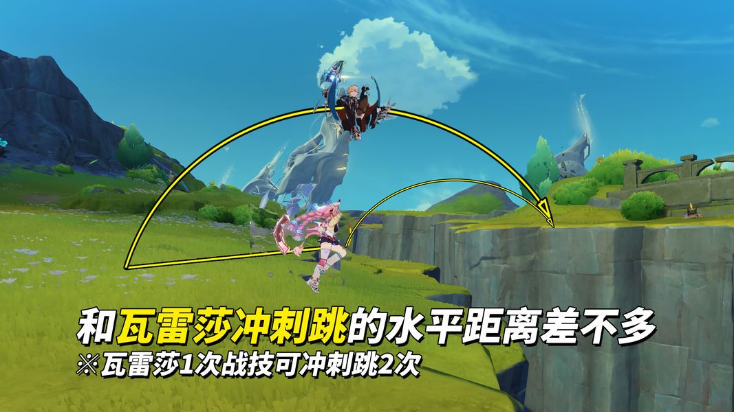 ※冻梨找到了前瞻演示地点,测试发现水平距离与瓦雷莎冲刺跳接近,垂直高度因视角问题不好测试,比温迪长按战技起飞更高。