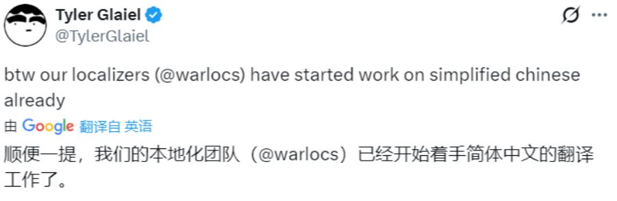 针对简体中文缺失问题,团队表示本地化团队已启动翻译工作。对于外界“为何不首发中文”的疑问,Tyler回应称,加入简体中文或将让游戏延期1-2个月,因此选择优先发售,不过团队已经开始着手准备中文了。