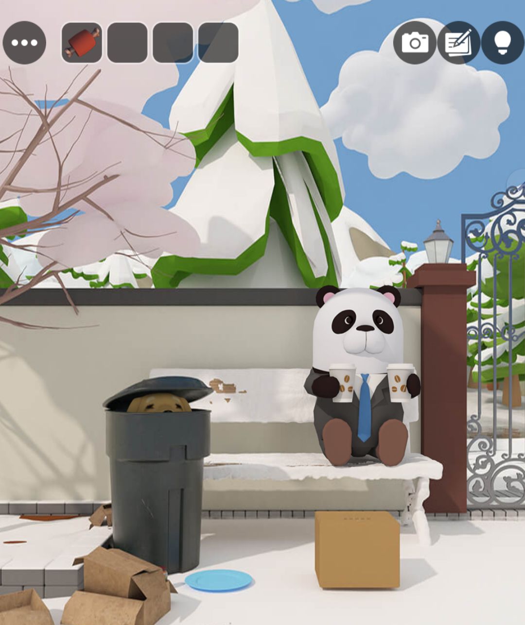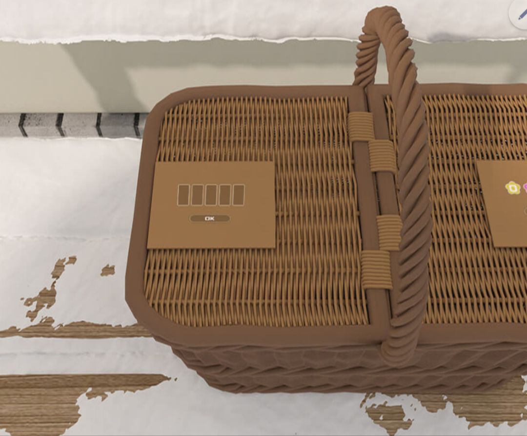 2.箱子里有咖啡袋子,给熊猫,仔细看咖啡杯上的线索:豆子的裂痕方向,换到自行车的场景,按豆子对应解开车篮