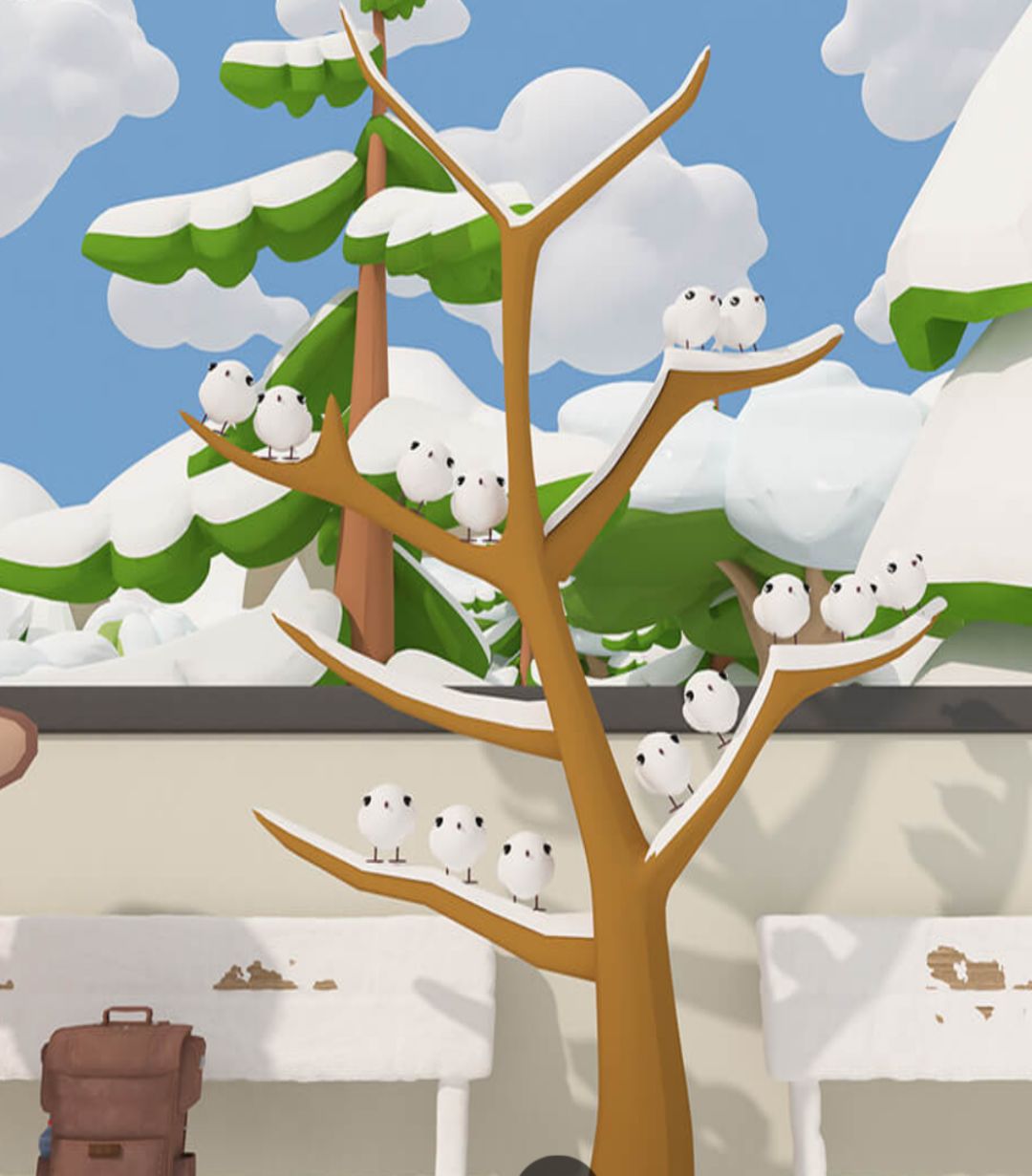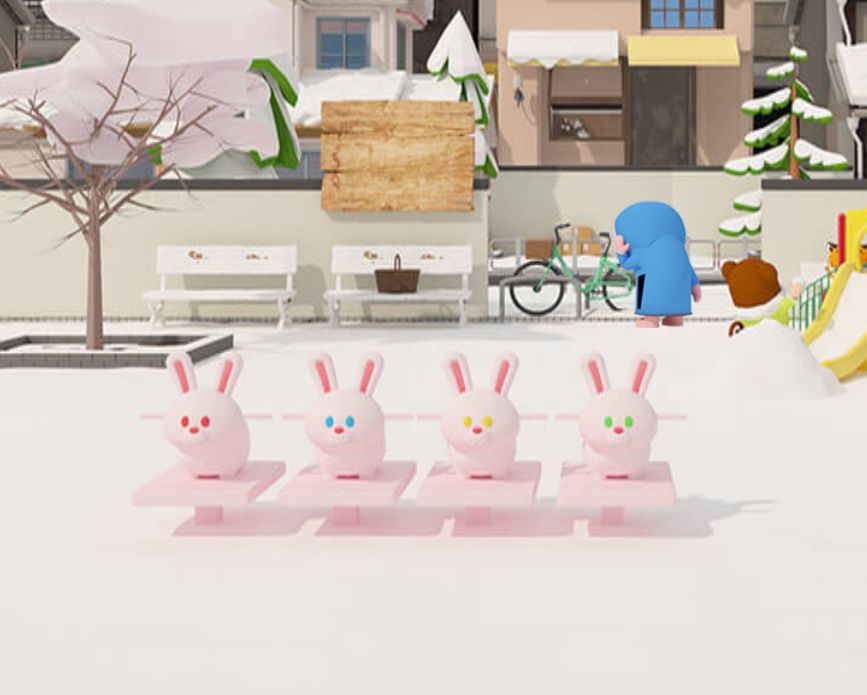 9.用绳索解救狐狸,得到雪兔子,把雪兔子放到对应位置,按照第一场景的兔子摇椅的眼睛颜色对应,