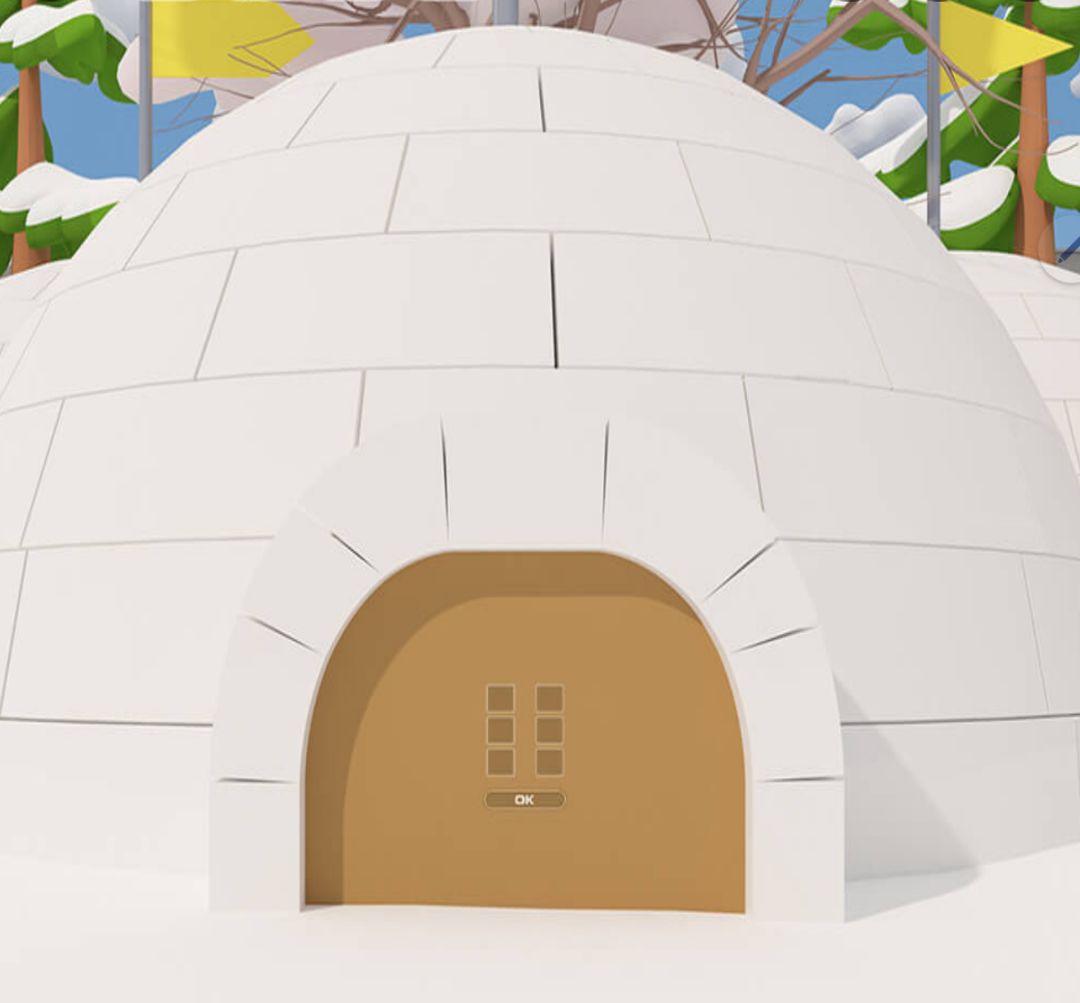 6.观察第一场景的房子,看白色的位置,可以解开中间雪屋的谜题